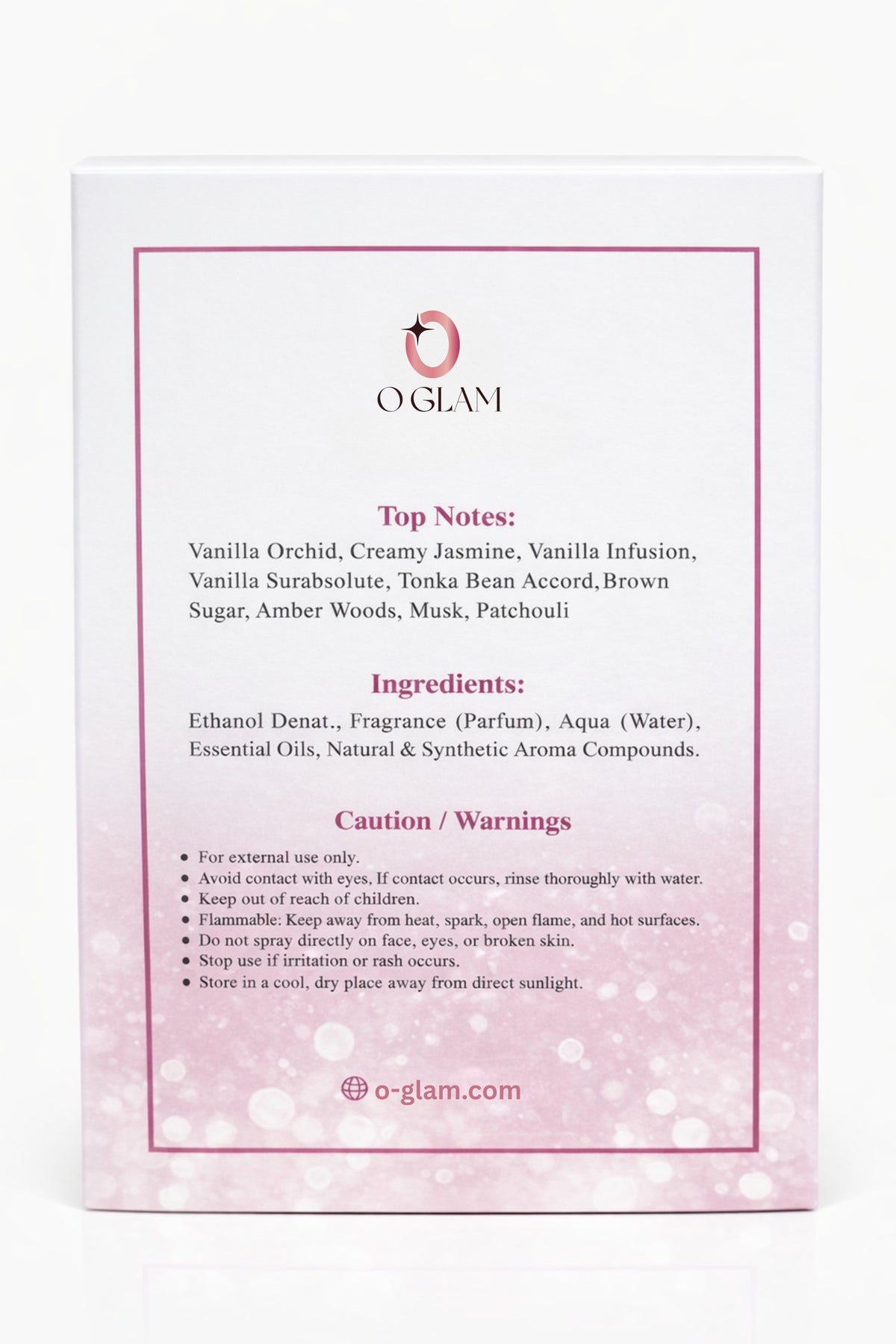 Vanilla Orchid, Creamy Jasmine, Vanilla Infusion, Vanilla Surabsolute, Tonka Bean Accord, Brown Sugar, Amber Woods, Musk, Patchouli