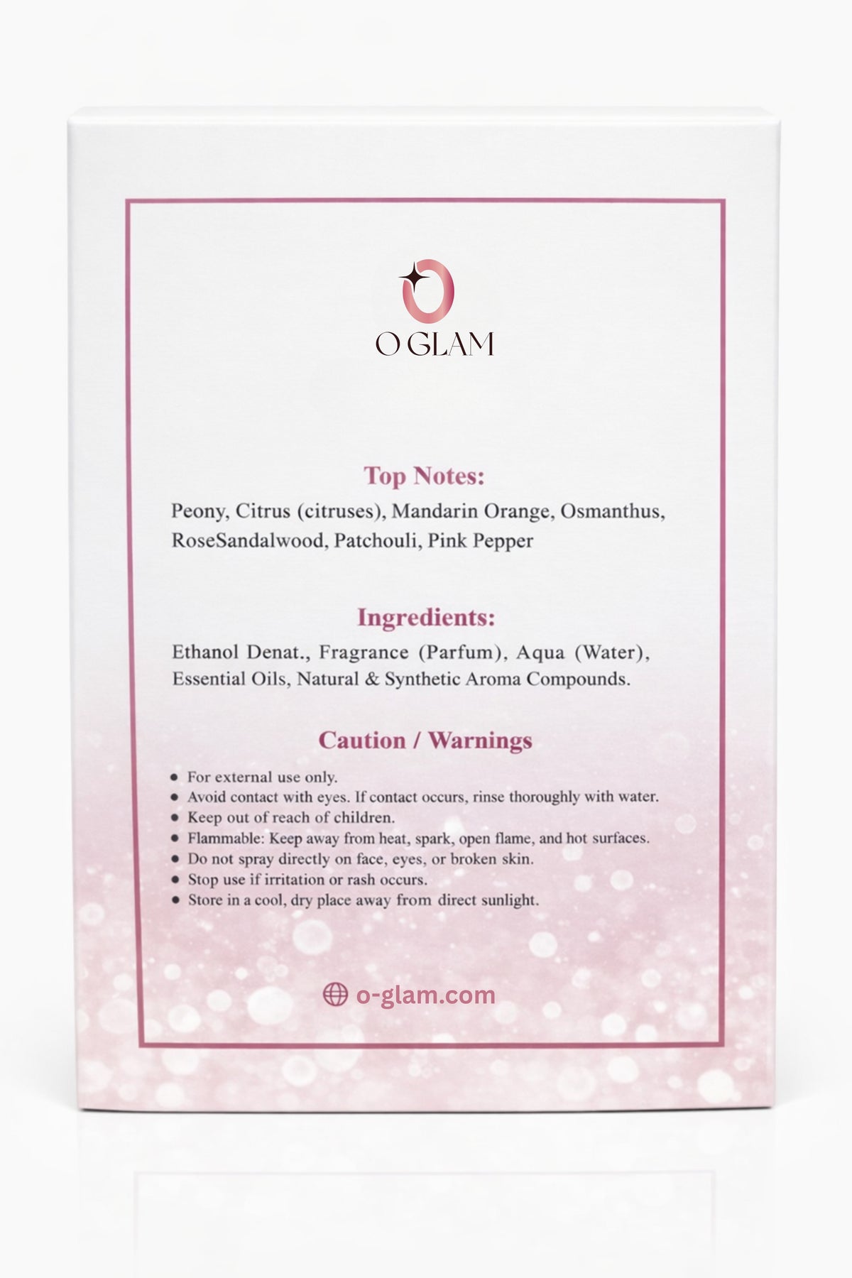 Peony, Citrus (citruses), Mandarin Orange, Osmanthus, Rose Sandalwood, Patchouli, Pink Pepper